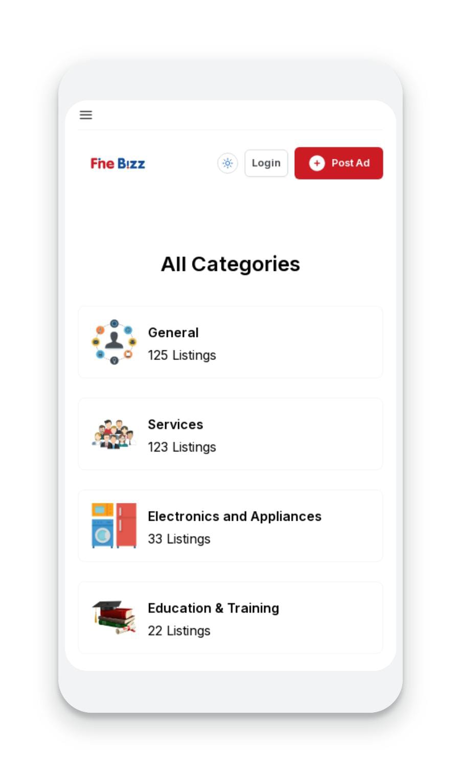 Navigate to the 'Post Ad' section to list items for sale or services offered.